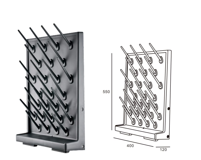 Draining racks are laboratory accessories designed for drying and organizing glassware after washing. Typically made from plastic or stainless steel, they feature multiple pegs or slots to securely hold beakers, flasks, test tubes, and other lab items. Draining racks help maintain cleanliness, improve drying efficiency, and prevent contamination in laboratory settings.